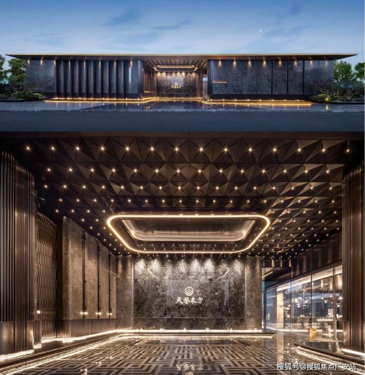 穹顶奢石,高门阔府,臻选蓝翡翠进口奢石、钻石星光穹顶,3D璀璨天幕,高定万字纹仿古铜地刻。恢弘门庭,孤珍用材,尽显豪宅奢华。