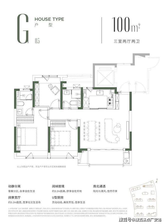 独立玄关、全屋飘窗、U型厨房也皆为标配。