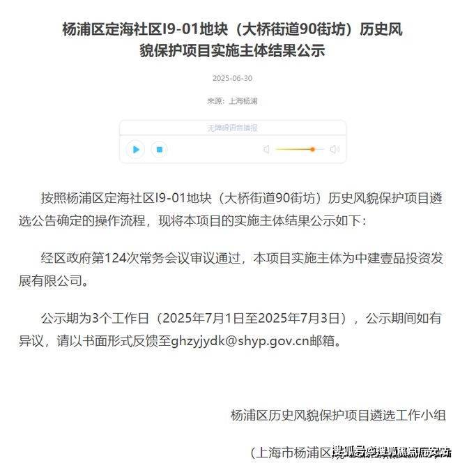 前段时间,杨浦定海社区I9-01地块(大桥街道90街坊)历史风貌保护项目遴选结果公示:中建壹品投资发展有限公司成功拿下杨浦大桥街道90街坊地块。