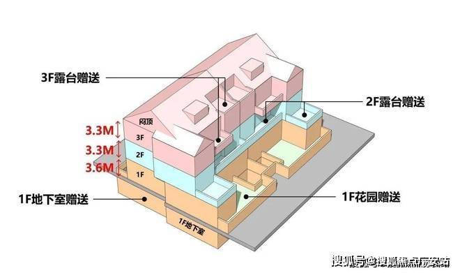 从内部空间体系来看,地上三层,层高分别是3.6米、3.3米和3.3米;每个单元一梯两户,每户均拥有类独立电梯厅;一楼带地下室及庭院,并通过创新退台式设计为二楼和三楼打造私家空中花园,形成户户有花园的墅居生活方式。