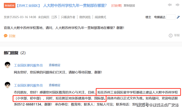 今年3月,官方宣布拟在奥体南 星华学校基础上建设人大附中苏州学校(小学部、初中部),同时, 拟在附近地块新建高中部、国际部。
