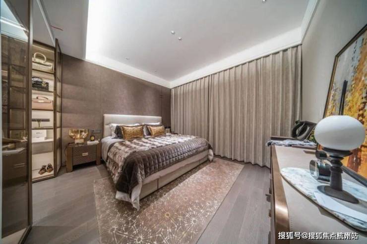 在大平层户型中最容易被忽视的主卧套房的格局,设计上更是给足了尺度,再加上转角窗的设计。