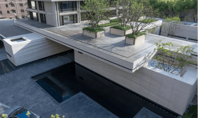 这种一般只存在于公园里的景观设计,这一次,招商将其挪入了私家园林。配合门外梧桐掩映,老静安的调性,跃然纸上。