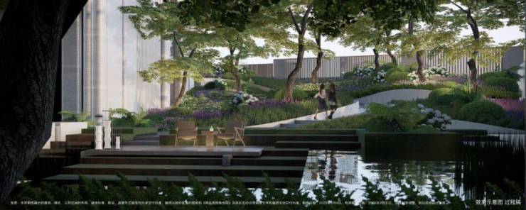 抬高之后的小区,整体景观丰富度,大幅提升:落座于约700㎡的落玉水院,眼底尽现堆坡造园的层叠视觉场域!
