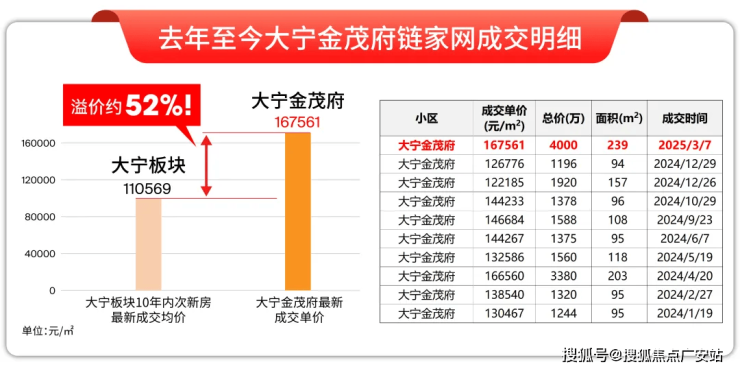 对比同板块其他次新房实现高达52%的溢价。