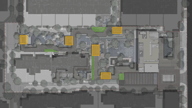 相较于唐朝规模宏大的建筑,宋朝建筑更偏向于精巧秀丽。这一特点具体表现在建筑上,即为屋顶起翘更大、屋身层层飞檐、基座漂浮架空。设计通过对传统的宋代建筑进行深入的研究,将布局形制、比例尺度、装饰要素等进行现代性的转译,轻于形而重于意。