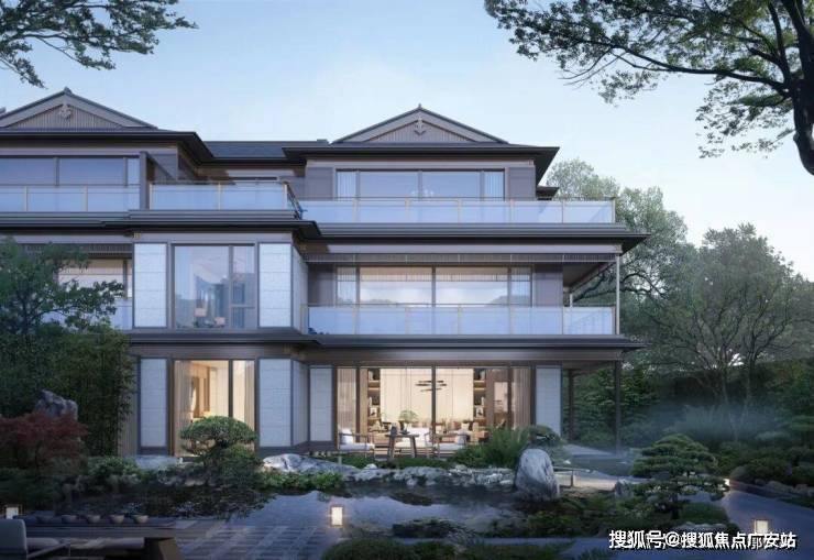建筑立面:古今交融的诗意表达:外立面以香槟金铝板为基调,搭配蓝眼睛石材与玻璃幕墙,融合传统歇山重檐、纳福悬鱼等元素,既保留宋式建筑的对称美学,又赋予现代建筑的轻盈通透。合院组团采用三面庭院设计,L型景观面与环绕式檐廊,将超山梅影、丁山湖光引入每一扇窗景!