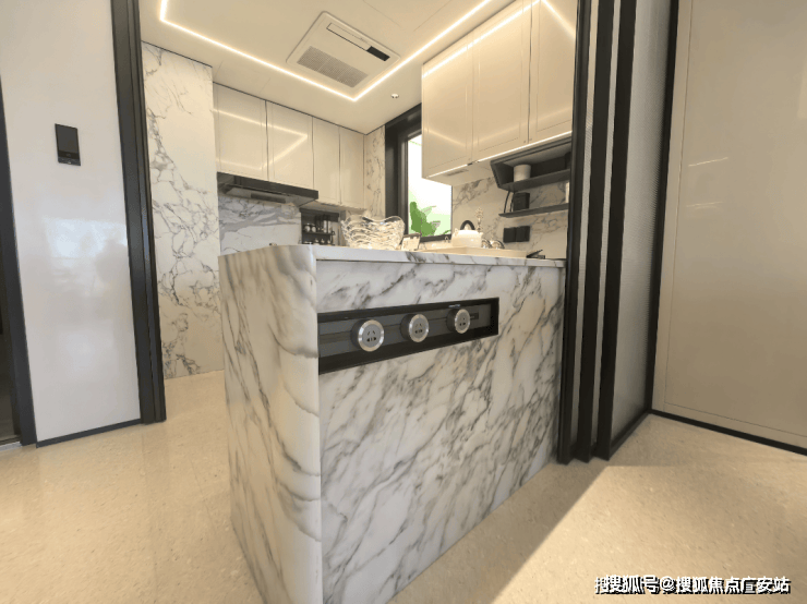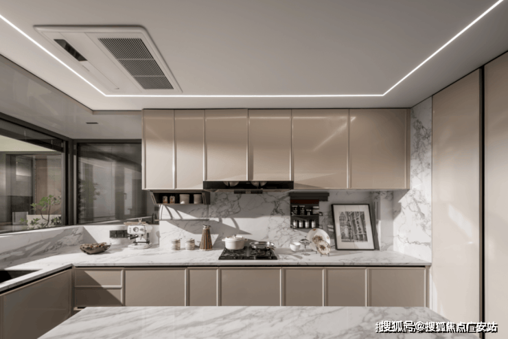另外,在整体动静分区的格局下,U型厨房不只是单纯的烹饪场域,更融入“社交属性”,让人们在烹饪的同时,也能与客厅的家人交流。