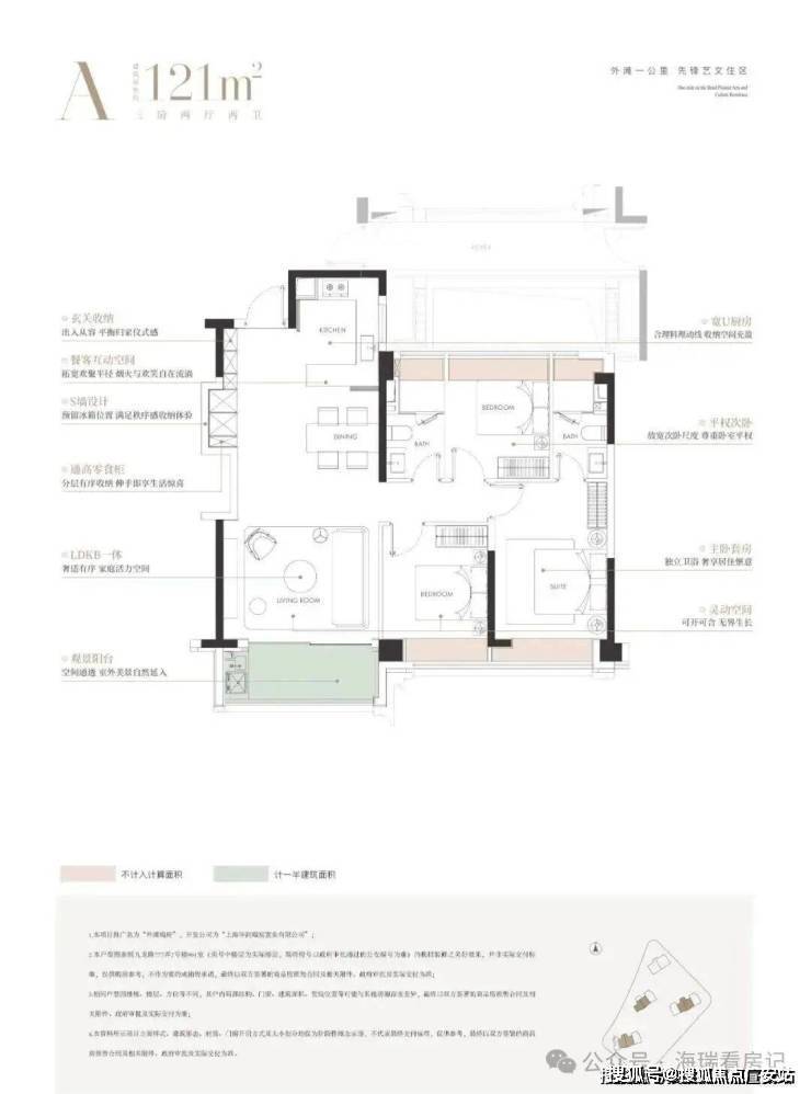 建面约121㎡3房: