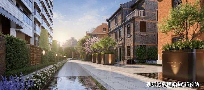 同时,建筑师还利用车行主入口的空间,结合水景、景墙和绿化打造出别具风格的开放式景观节点,并在风貌保护区的巷弄内设置 端头对景,宅间花园等。