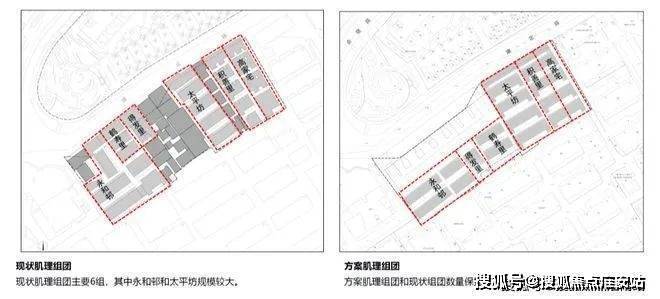 作为焕新的第一步,建筑师将得发里、鹤寿里以及永和邨南北向的建筑全部平移到地块中央进行肌理织补,拉通了原有未贯通的东西向巷弄,使行列式肌理达成连续性,并且扩大了文保部门认定的肌理保护范围。