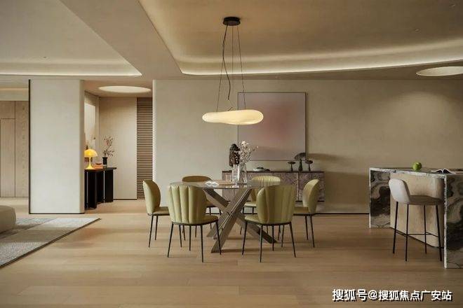 客餐厅以连贯视角奠定视觉基调,顶面弧线替代尖锐线条,贯穿空间削弱压迫感,延伸视觉开阔度。柔和暖色调交织出丰富层次,搭配弯曲线条勾勒轮廓,营造松弛宁静的生活氛围,弧线更成为串联空间的点睛之笔。