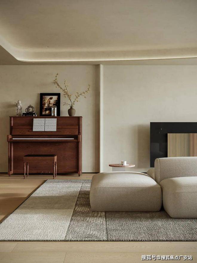 为营造自由通透的空间感,我们规划流畅生活动线。米灰色低饱和模块沙发,以多面体块拼接造型,灵活适配不同视角与布局,成为家庭核心区焦点。它与多功能房、餐厅、水吧等区域形成视觉呼应,构建出 “平行陪伴” 的温馨生活场景。
