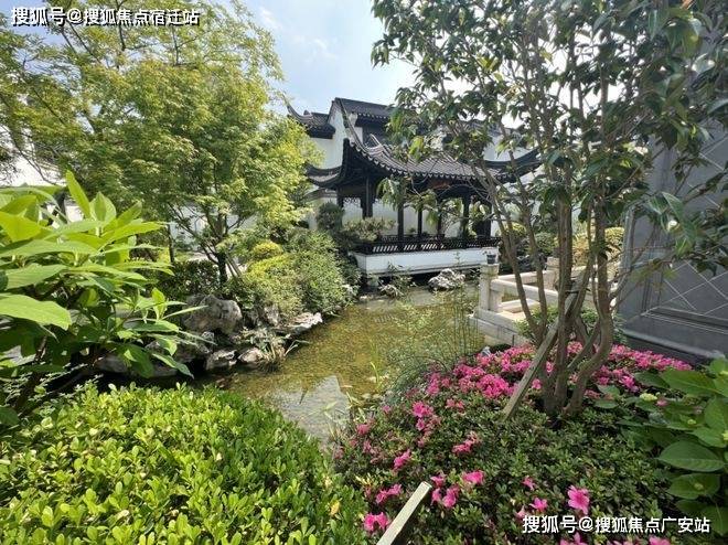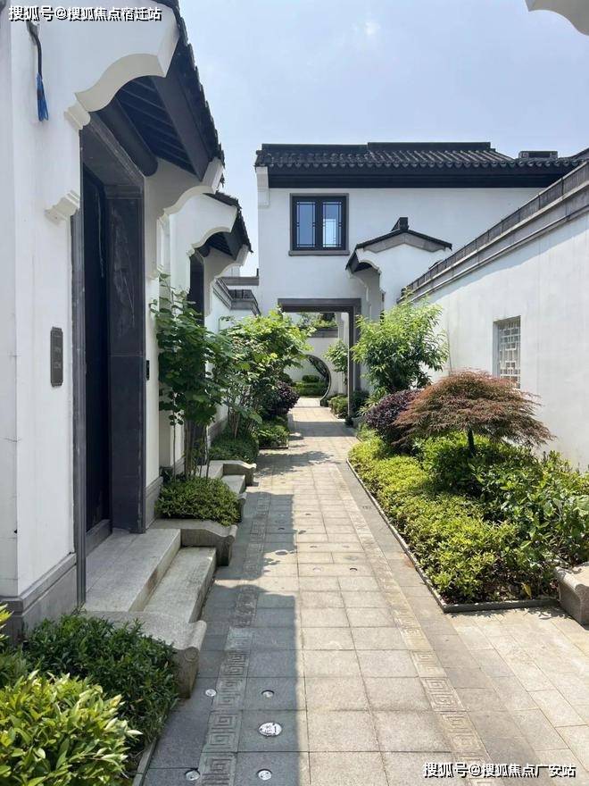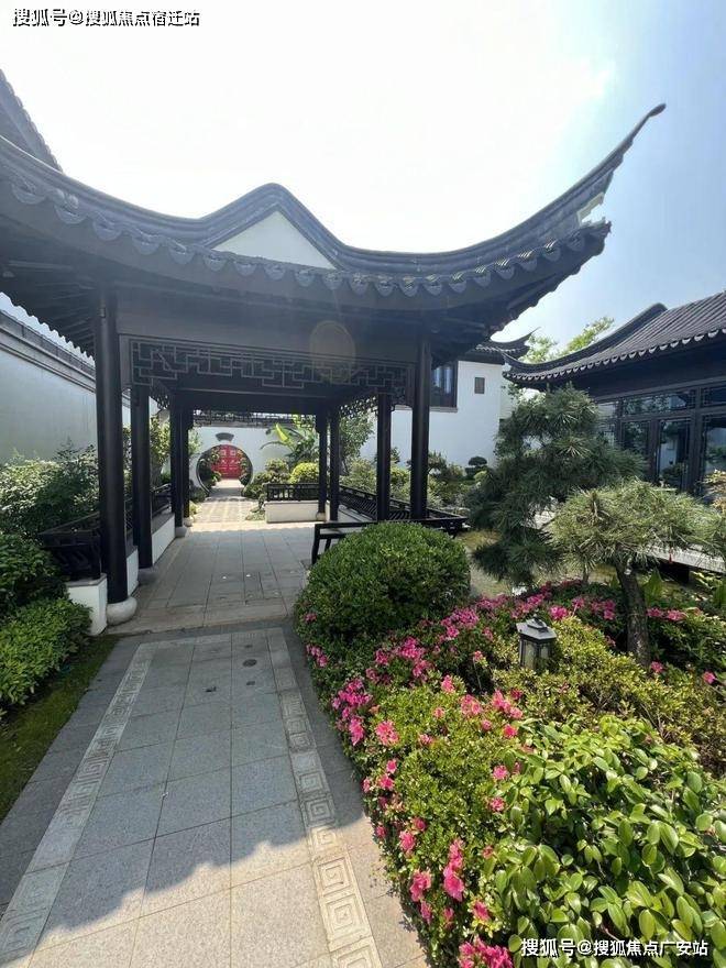 黑、白、灰三色为主色调的建筑,搭配上门洞、漏窗、飞檐等传统元素,展现出古典园林的精髓。开发商巧妙地运用借景、框景、漏景等手法,将自然景观与建筑融为一体,营造出一种宁静、和谐的生活氛围。