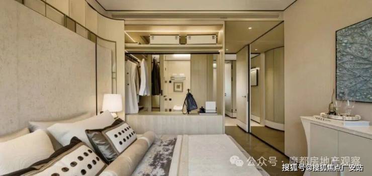 主卧套房配备步入式独立衣帽间,延展的飘窗,将“观景视野”与“生活场景”深度融合,是居者难得的“私享精神角落”,彰显高端居住质感;