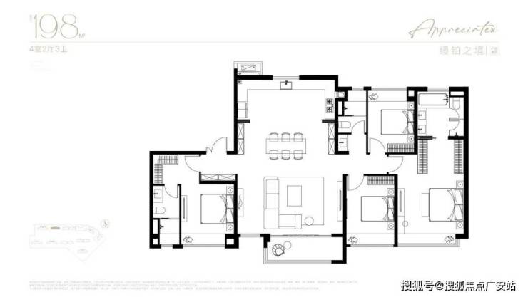 终极改善的顶奢4房!极端宽奢的南北通透户型飞机户型,你能想象到的美好都能在这个户型中体验到。