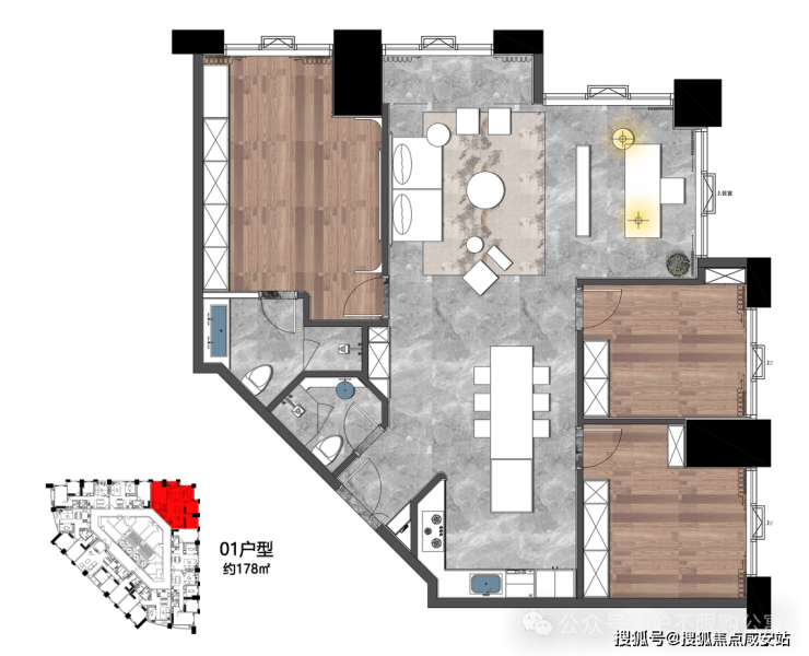 177㎡,东北朝向,4房(3+1)全能户型,边套+超大阳台+极致采光
