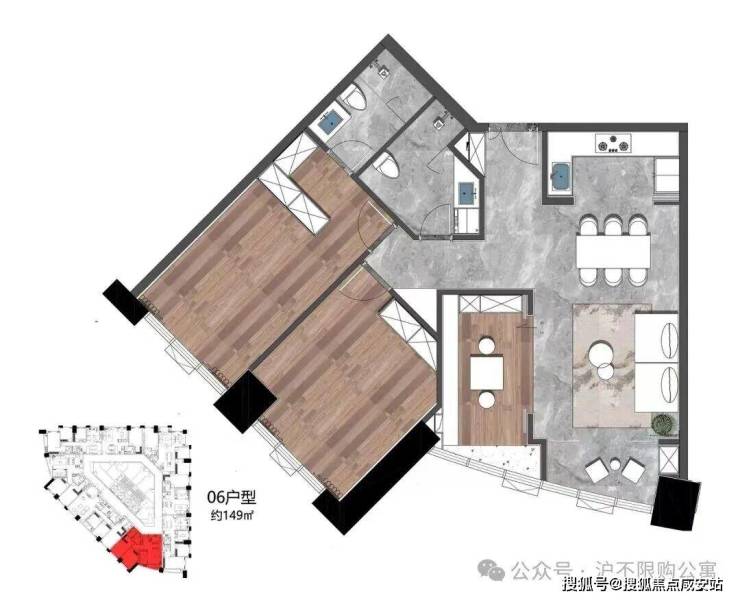 149㎡,西南朝向,3房(2+1)灵动布局,功能多变