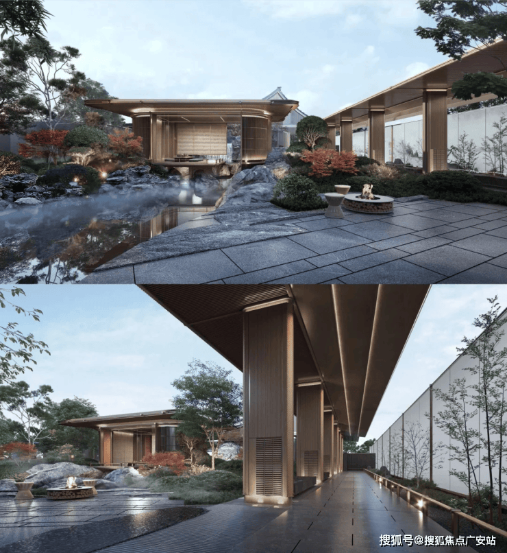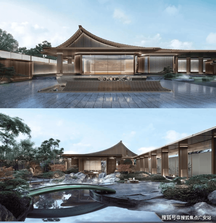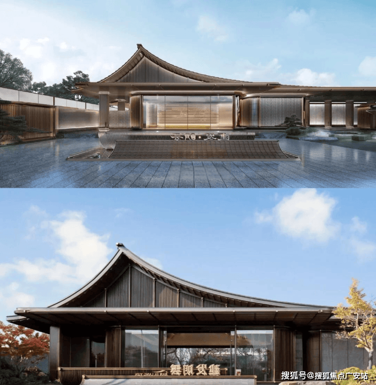 外立面采用现代东方风格,搭配江南园林景观示范区