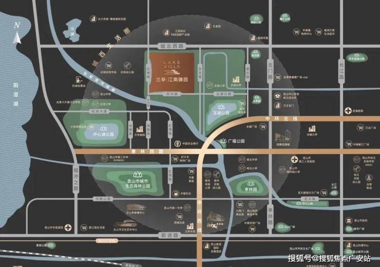 The Central Lake area of Kunshan is located in the core of the western part of the city. It is a central area integrating life, education and research, and leisure sports in the western part of Kunshan. The surrounding areas include community fitness parks, wetland parks, festival squares, retail commercial plazas, and neighborhood commercial centers.