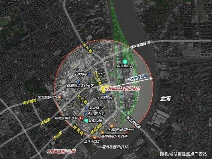 定海街道154街坊项目【即中建壹品·外滩源著】四至范围:东至军工路(中环)、南至平凉路、西至规划白洋淀路、北至长阳路。