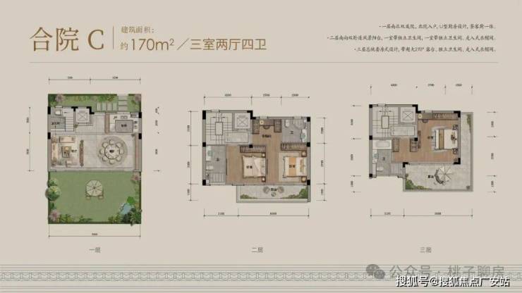 秉承桃李系美好生活之高标准,构筑“园、院、居”三重空间,打造“居中有园,园中有院”的梦想居住模式。户户有花园,家家有院落,归园院居,风烟俱过处,尽得人间乐。项目整体规划呈现出三进院落的格局,以“两轴、一芯和十景”为景观核心,构建出一幅“山居院落,江南园林”的美好画卷。