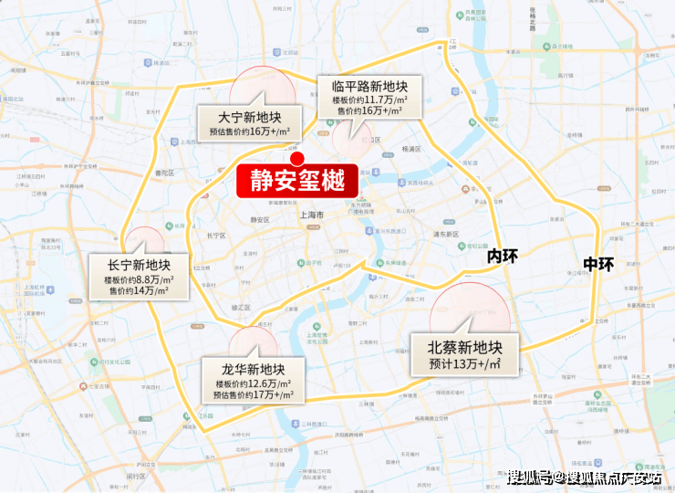 别说静安内部了,扩展到全市,简单看看几大热门板块的新地王,浦东北蔡新地块预计13万/㎡左右、长宁新地块14万/㎡左右,临平路16万+/㎡、徐汇龙华更是奔着17万/㎡去了,这些中环附近板块3房总价起步就是1500万以上!