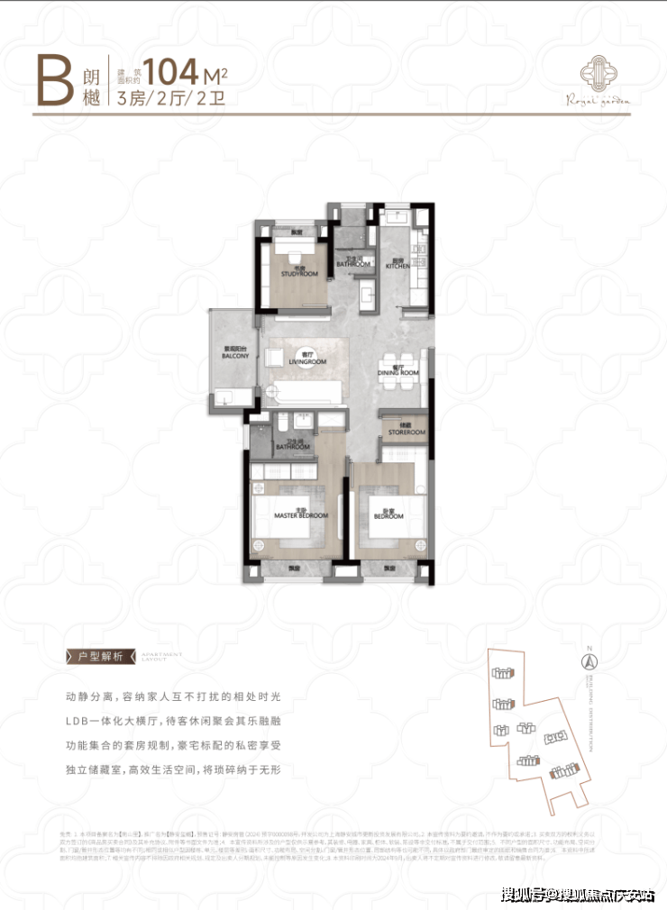 项目预计加推的三期房源,主要包括建面约98-107㎡2-3房。看点有三: