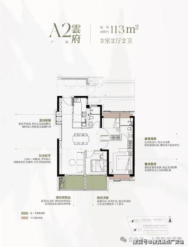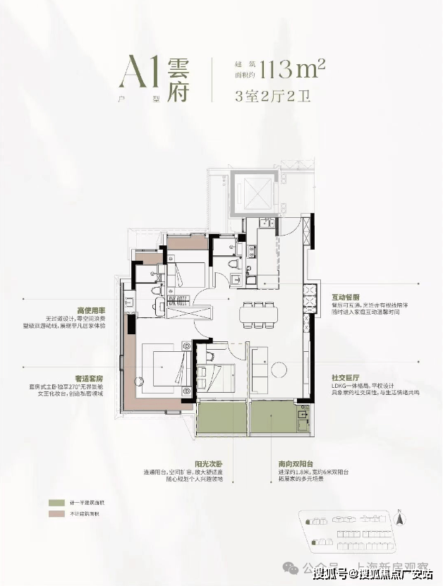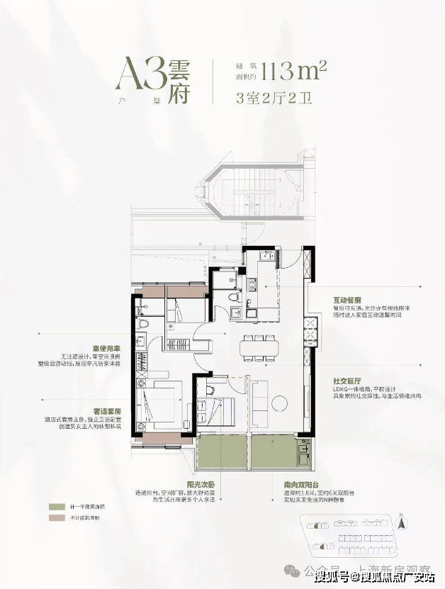 113㎡三房:三开间朝南,6 米横厅,总价约 1037 万起