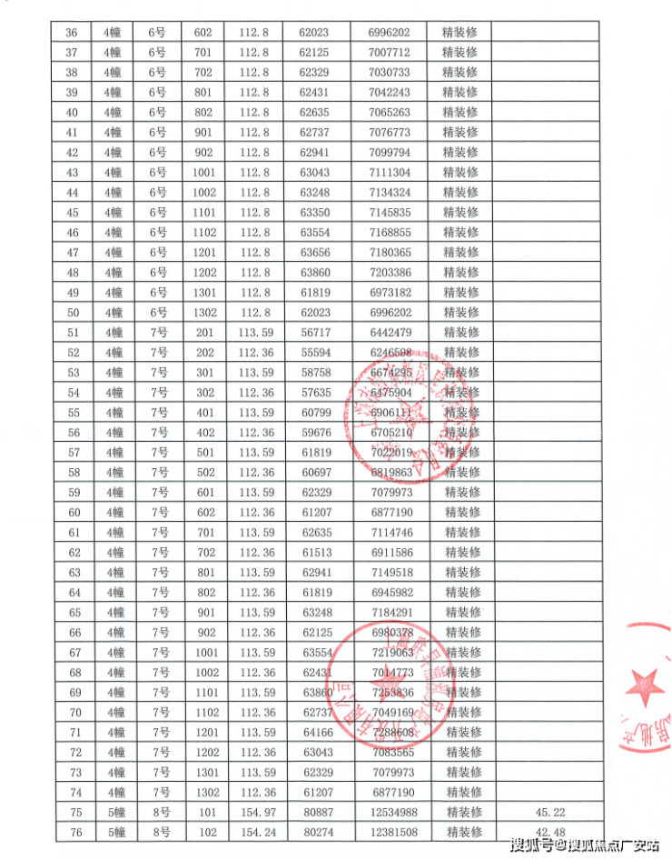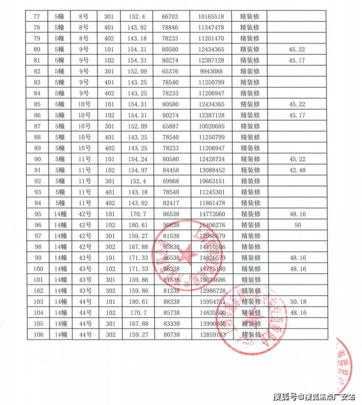 上期一房一价表如下: