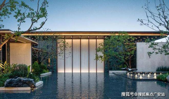 穿过归家大堂,入眼的便是大片的镜面摩登水院,涌泉叠水,高低错落、动静相宜。景观设计团队更是在水院里做了一个下沉式卡座,未来业主可以在这里闲坐观景,与三五好友可以畅聊天地。
