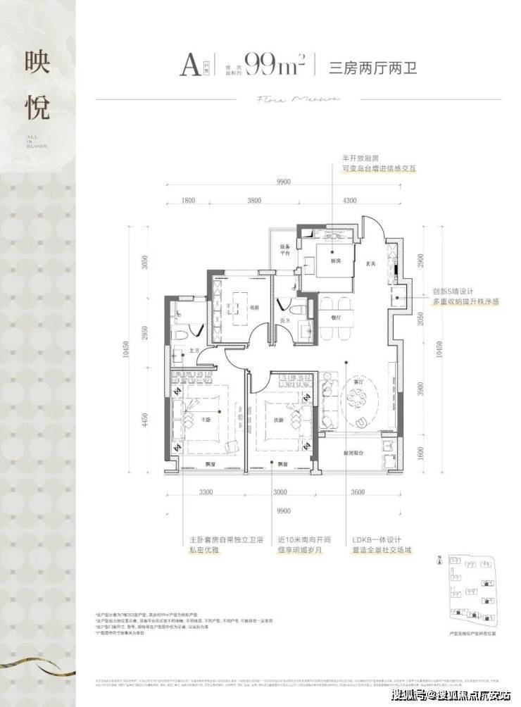 亮点:四开间朝南、南向面宽约13.5米、全明通透、主卧衣帽间