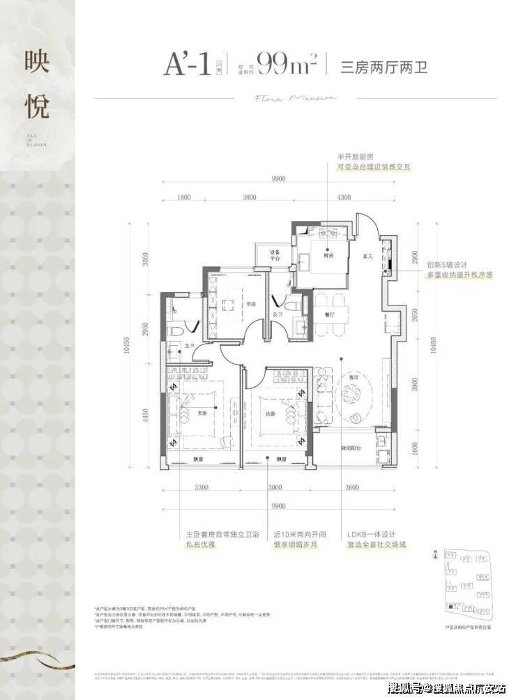 格局:L型采光、双厅一体、双套房、封闭阳台,3月加推主力