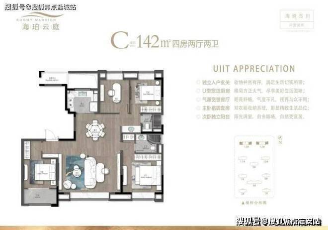主力户型:142㎡、166㎡、188㎡四居室,均价21500-27800元/㎡,精装标准:配备大金中央空调、威能地暖、曼瑞德新风系统,卫浴采用杜拉维特品牌,五金件为高仪系列