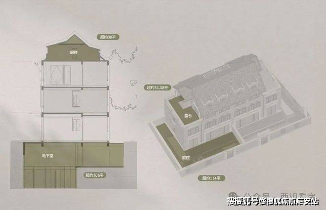 立体布局:地上三层+地下两层+庭院+露台