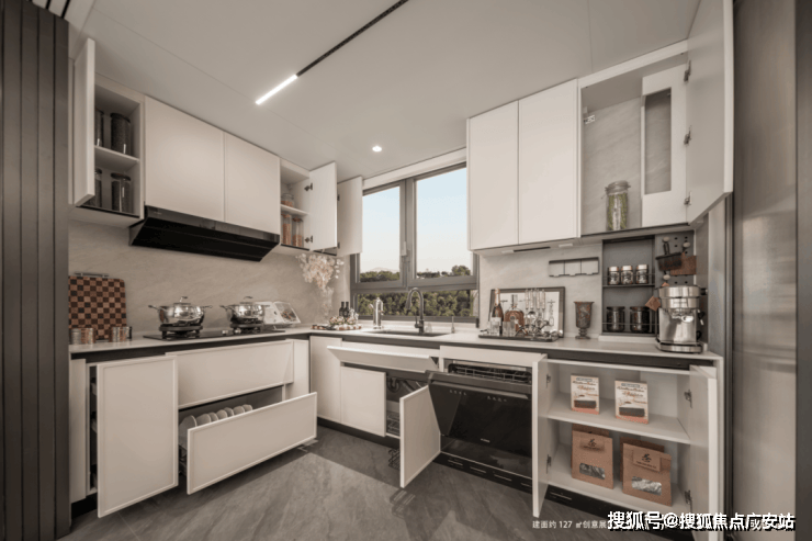 无界厨房移门采用上轨道设计,三联动移门的设计,可开可合,在不使用厨房时可以做到最大化的利用空间。