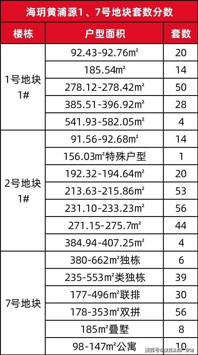 上海建工黄浦新项目「海玥黄浦源」1号地块超高层住宅、7号地块风貌别墅,大致的户型套数分布如下👇