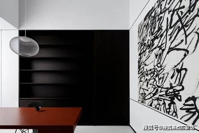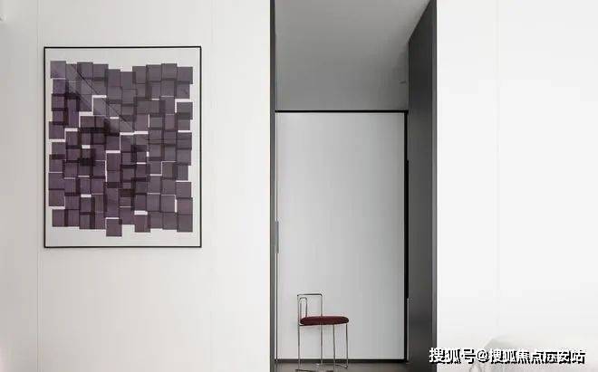 私密场域依旧保持静谧,黑白色基础上搭配了更多的色彩,例如深棕、浅紫等,艺术品的衬托深邃迷人,热络了家的氛围。
