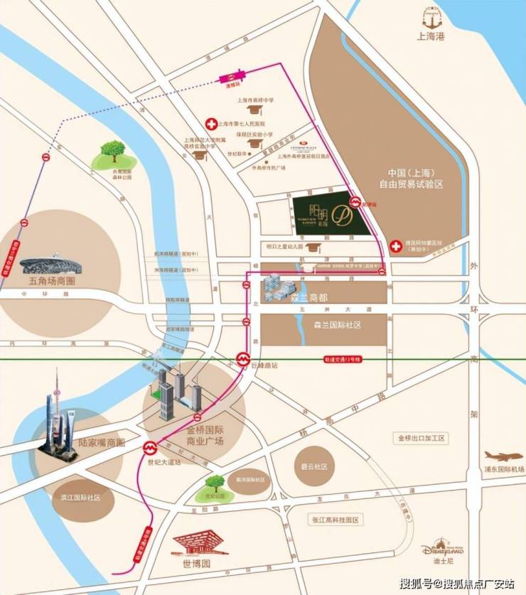 阳明花园又名阳明花园广场,项目坐落在浦东外高桥板块,位于季景路333弄(杨高北路秋霞路交叉口),靠近外高桥自贸区四号门,距离轨交2号线航津路站仅200米,妥妥的地铁盘!区域内配套十分成熟。