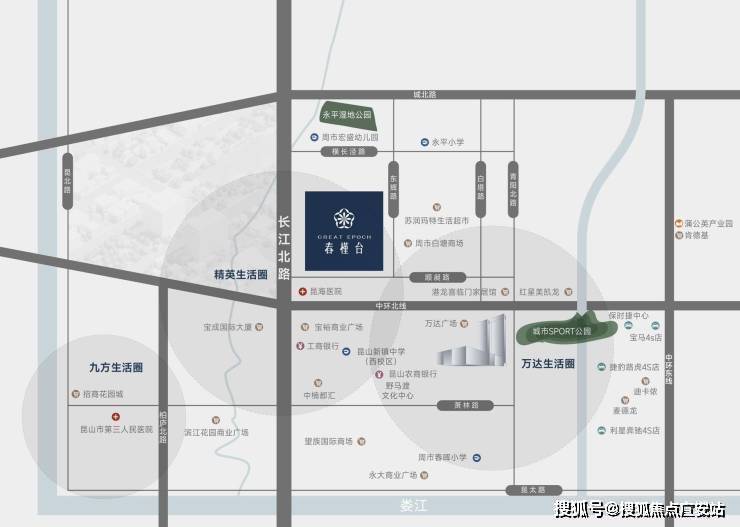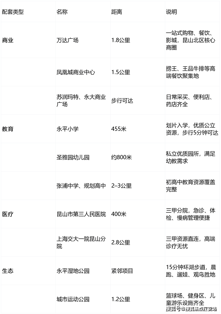 医疗配套:小区附近有 5 座医院,昆山市第三人民医院、上海交通大学附属第一人民医院昆山分院距离项目直线距离约 2.8 公里。
