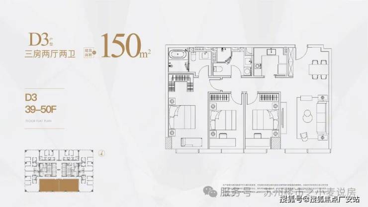 高区为39-50层,户型分别是125㎡,150㎡,180㎡。