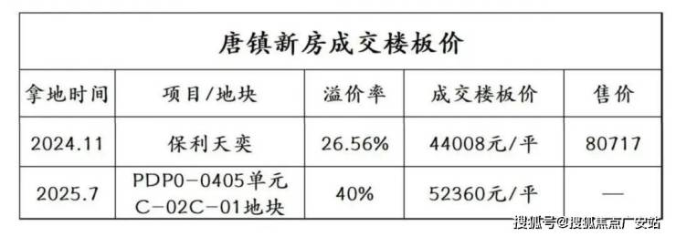 25年7月25日的土拍现场,唐镇地块的争夺堪称“白热化”。62轮报价后,楼面价定格在5.24万元/㎡,溢价率突破40%。这个数字放在唐镇,足以让市场倒吸一口凉气——要知道,2024年11月保利拿下的唐镇地块,楼面价还停留在4.4万元/㎡,短短8个月,地价涨幅近20%。