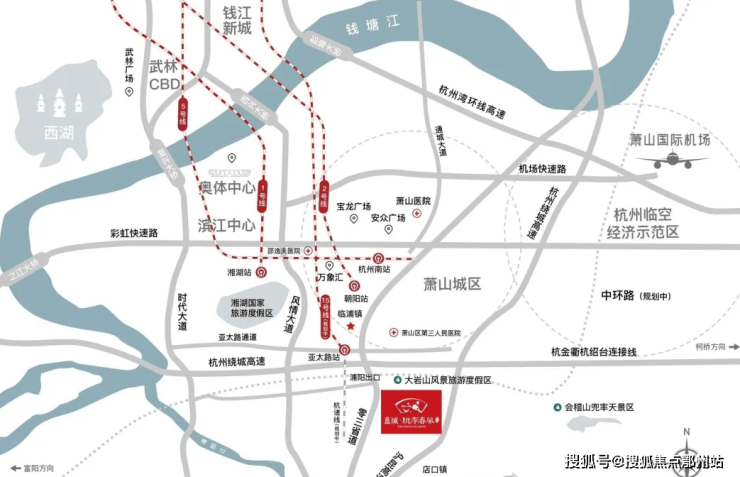 咫尺沪昆、绍诸高速,经风情大道1小时可达萧山主城,经时代大道1小时直抵滨江核心、钱江新城和西湖,通达八方,一览城市繁华。