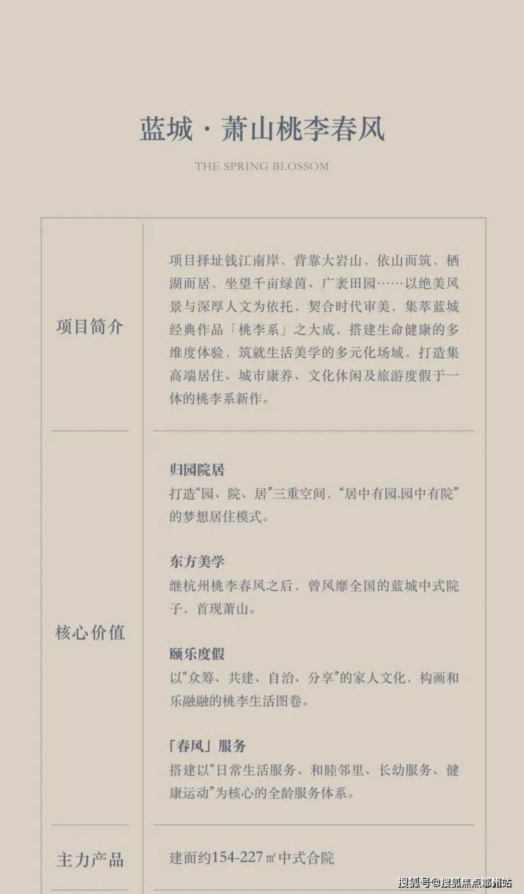 钱江南岸,背靠大岩山,依山而筑,坐望千亩绿茵、广袤田园……以绝美风景与深厚人文为依托,契合时代审美,集萃蓝城经典作品「桃李系」之大成,搭建生命健康的多维度体验,筑就生活美学的多元化场域,打造集高端居住、城市康养、文化休闲及旅游度假于一体的桃李系新作。