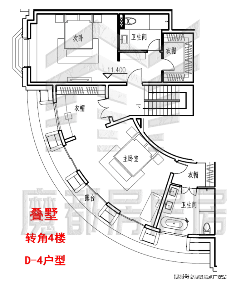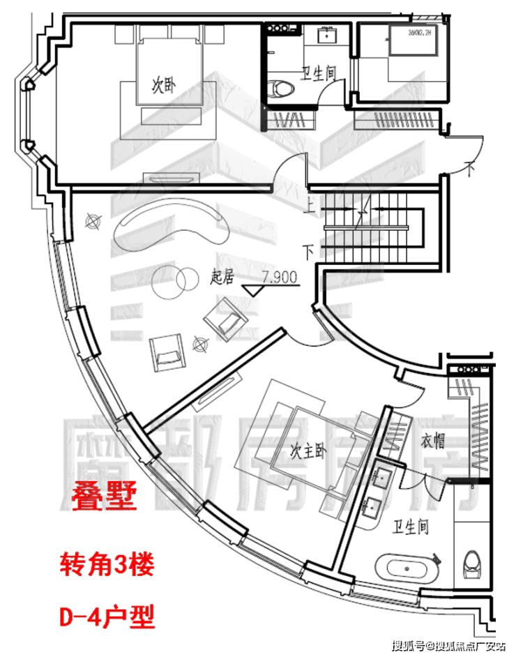 叠加别墅的2-3-4楼D-4特殊户型约433㎡。