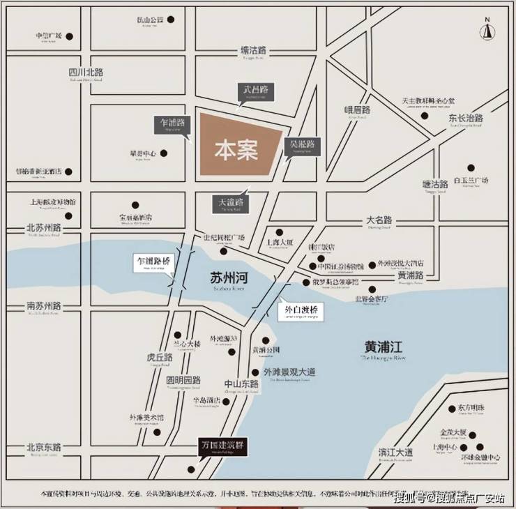 再看项目的位置,选址于黄浦江与苏州河交汇处,距离上海著名的外白渡桥仅约260米,家门巷口的这道湾就是黄浦江精华之所在,从这里可以直接步行至外滩。这里是上海市中心真正核心的优质地段!