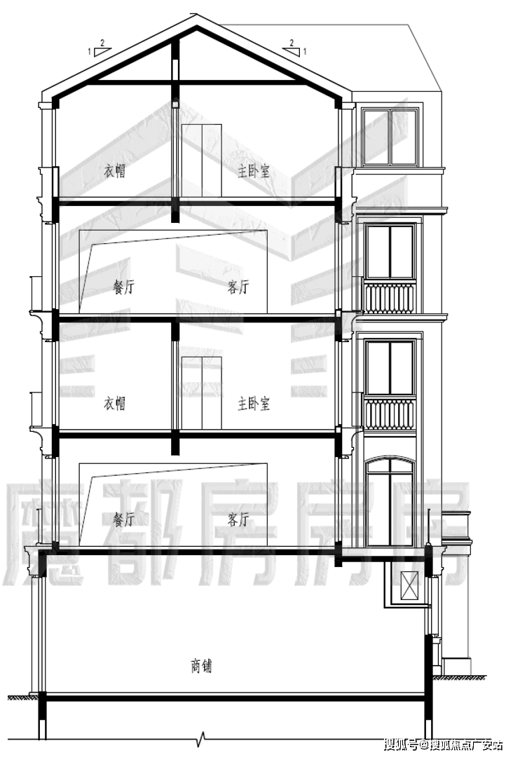 来看看叠加别墅的剖面图。