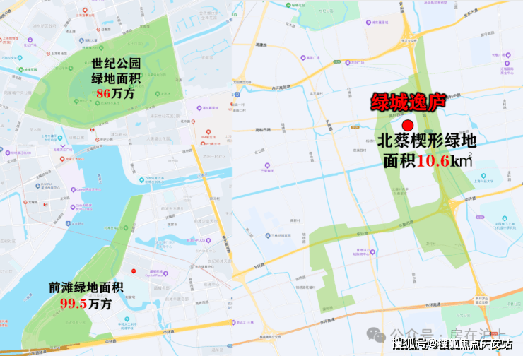 而北蔡楔形绿地,恰好完美契合这一择址原则。