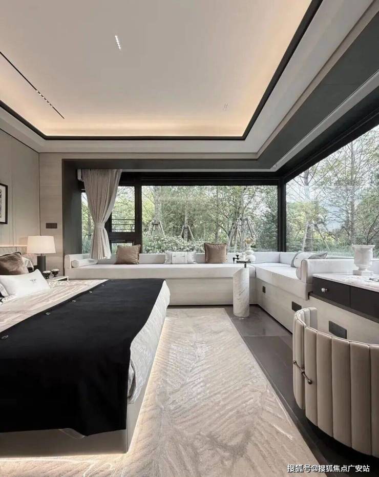 项目本次的边套设计了大量的飘窗、转角飘窗、主卧270度落地窗等设计,所以整个立面运用了大量的玻璃,构建出了非常极致的窗墙比。