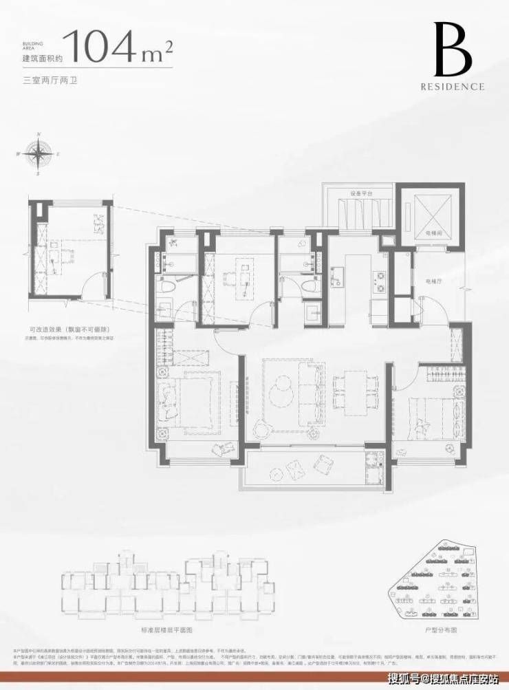 谁不想拥有大横厅,百平米内也能做到!招商中旅·揽阅的104平户型可以说是满满的诚意品质担当。
